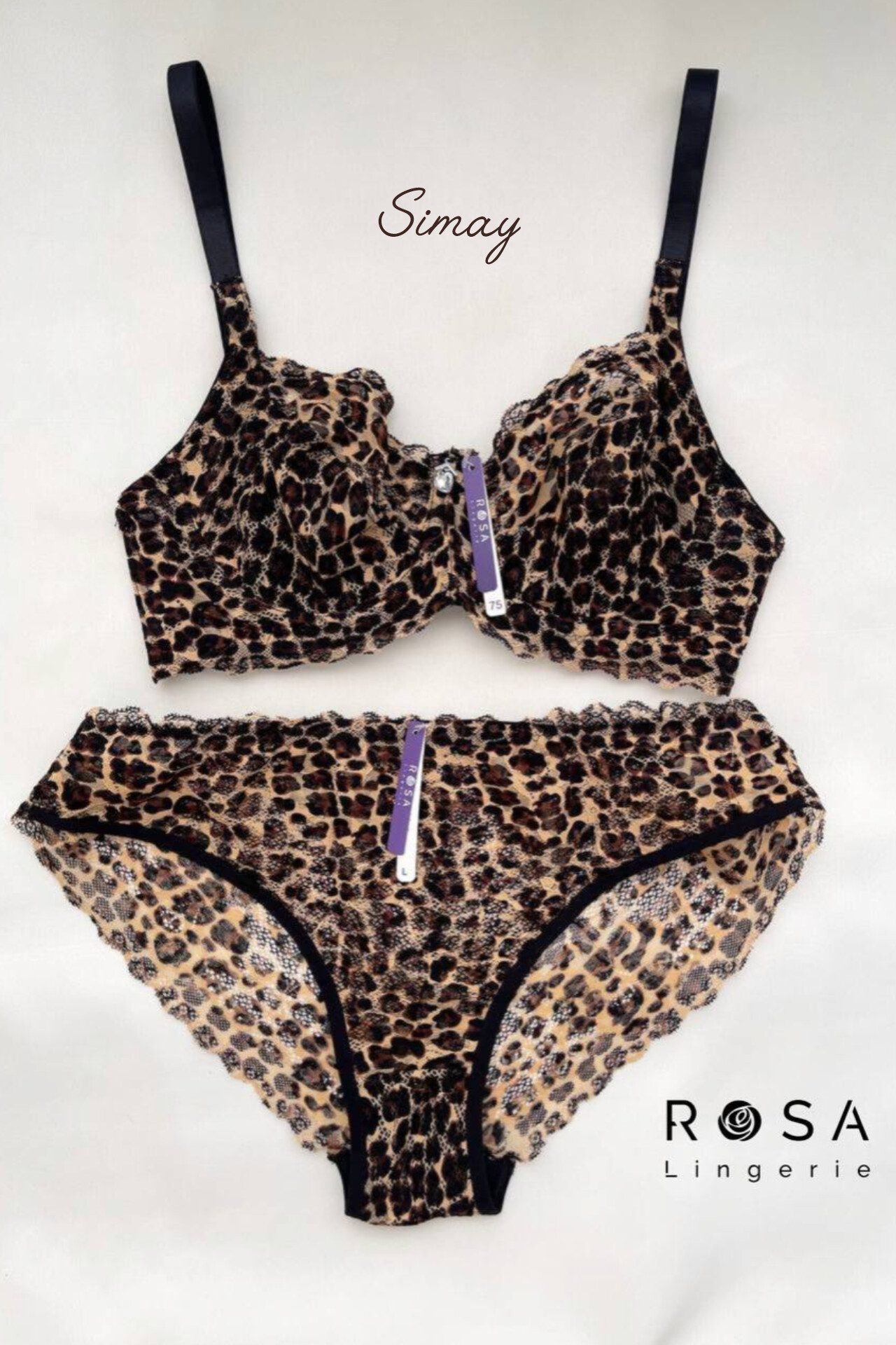 ست سوتین فنردار و شورت دانتل کشی پلنگی برند رزا