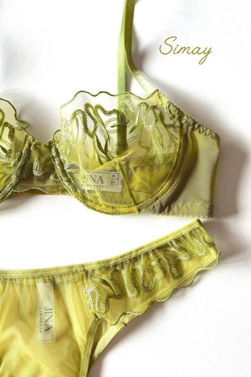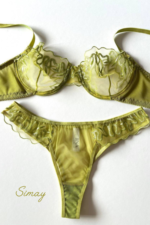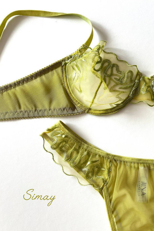 ست سوتین فنردار و شورت دانتل ژینا مدل زیتون