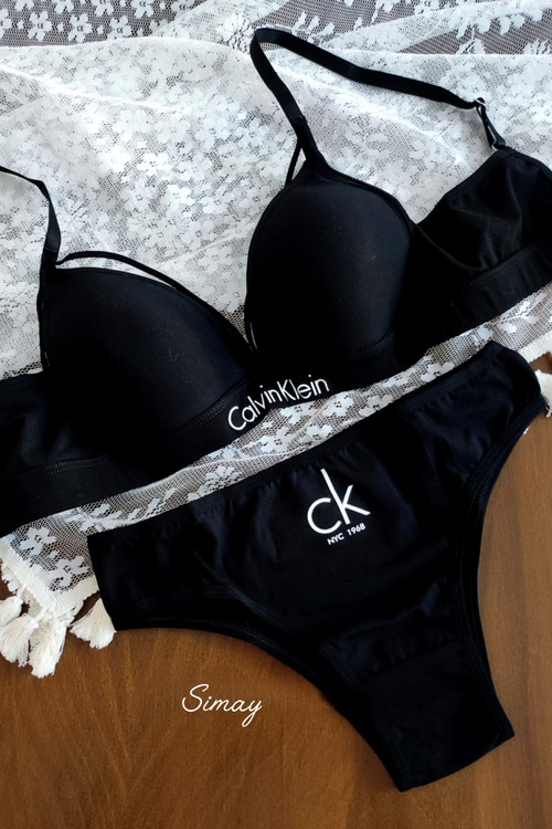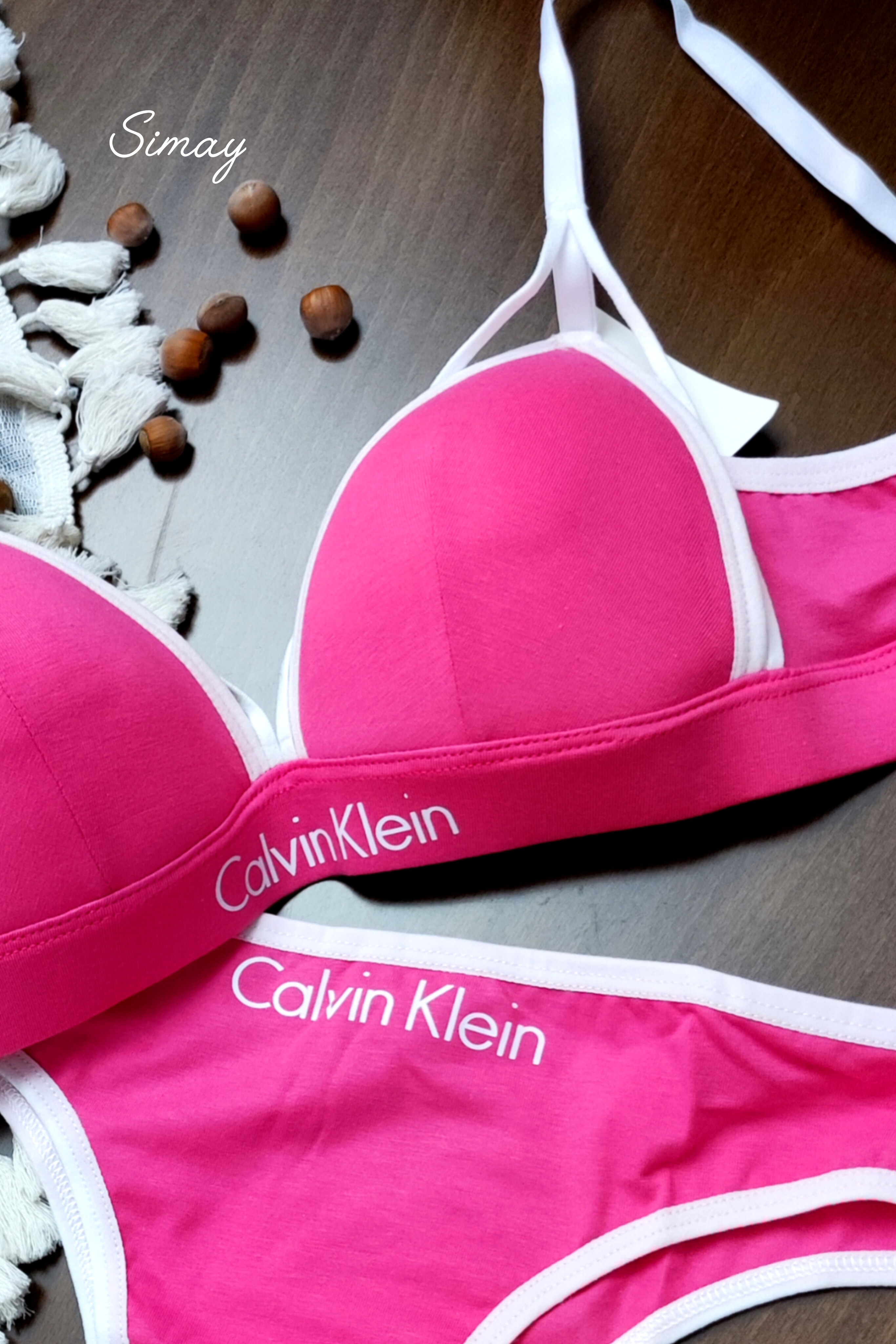 ست سوتین و شورت ck از محصولات جدید برند با کیفیت فیتن با جنس نخی، سوتین هارنس دار کاپ مثلثی با فرم دهی عالی به سینه همراه با قزن پشتی، بدون فنر، با قابلیت تنظیم بند سرشانه و طراحی شیک در رنگبندی زیبا تولید شده و در سیمای گالری موجود میباشد.