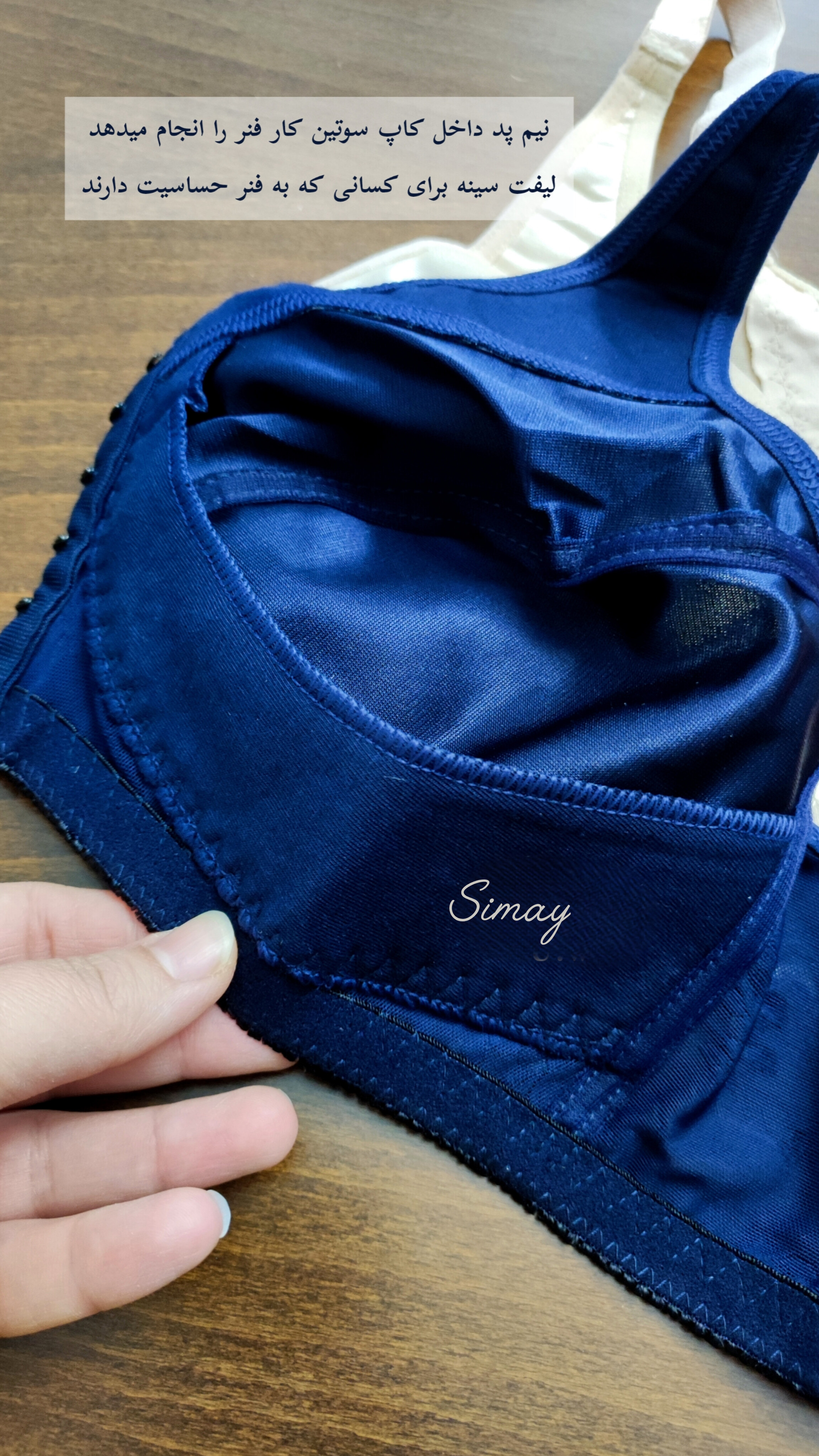 این سوتین بدون فنر بوده و به جای فنر، نیم پد داخل کاپ سوتین کار شده که وظیفه لیفت سینه را دارد.