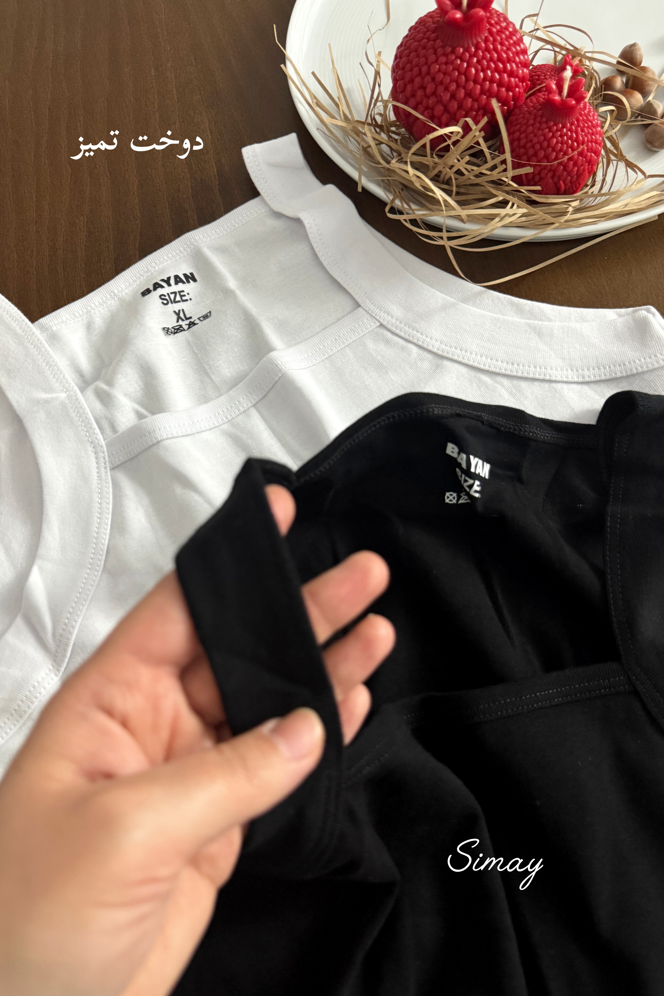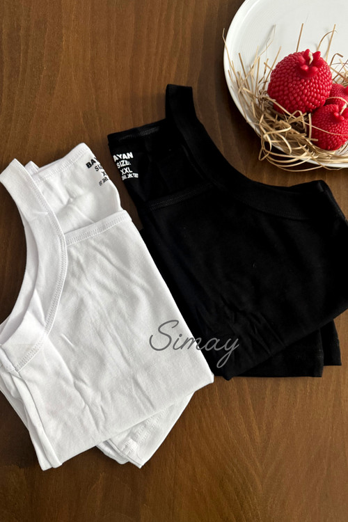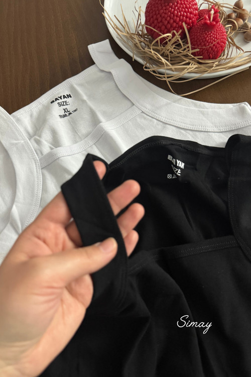 زیرپوش رکابی نخی یقه خشتی مردانه سفید و مشکی