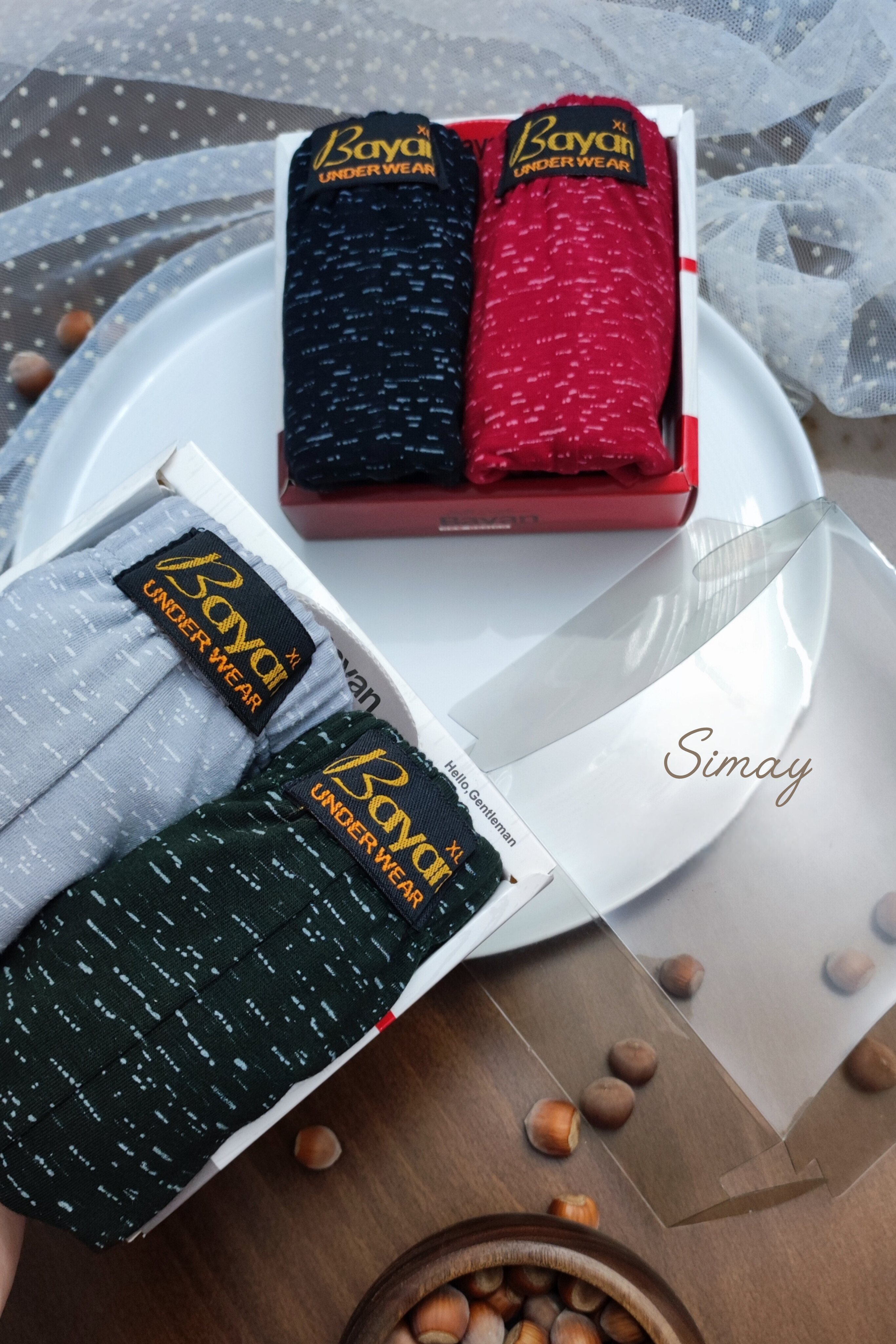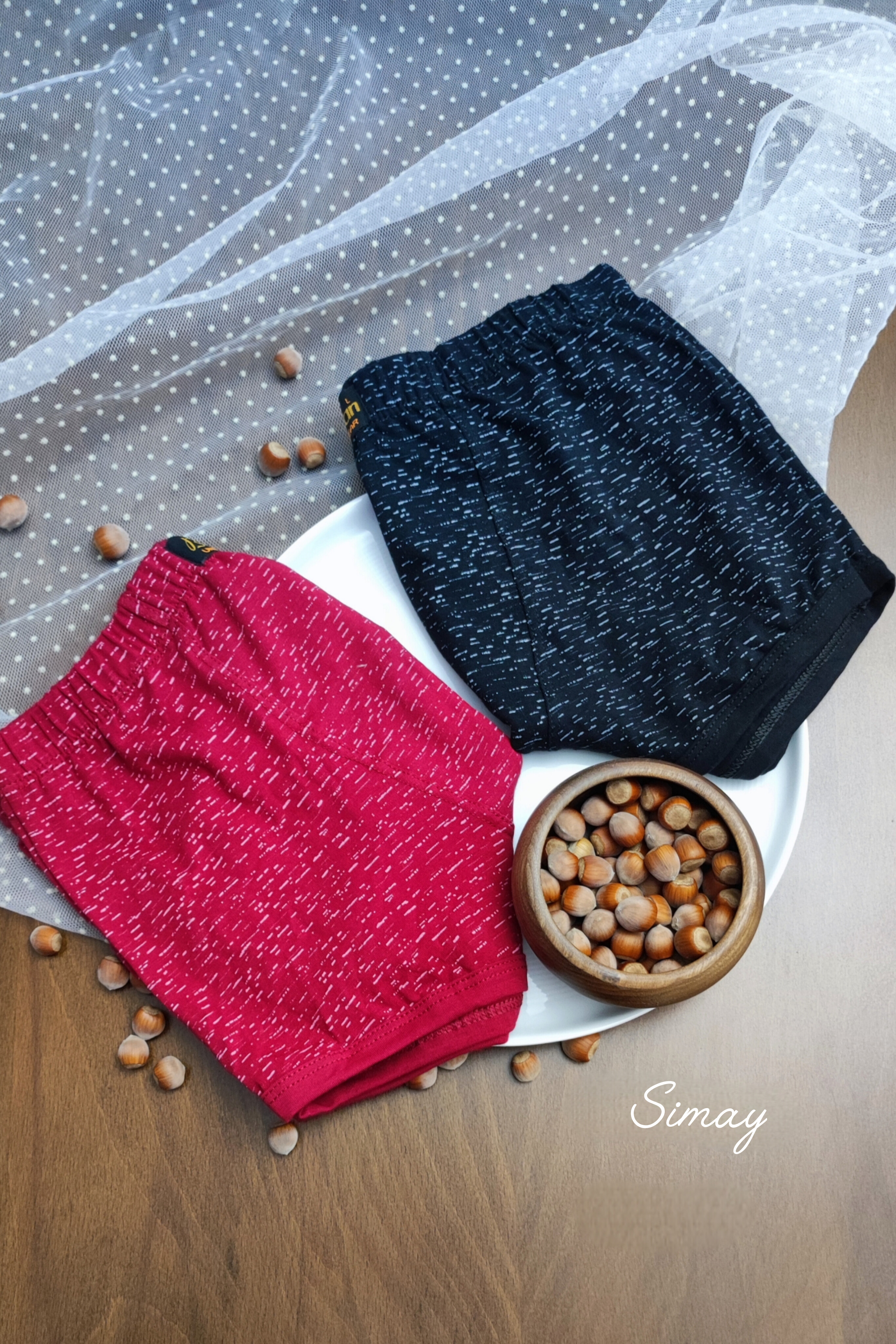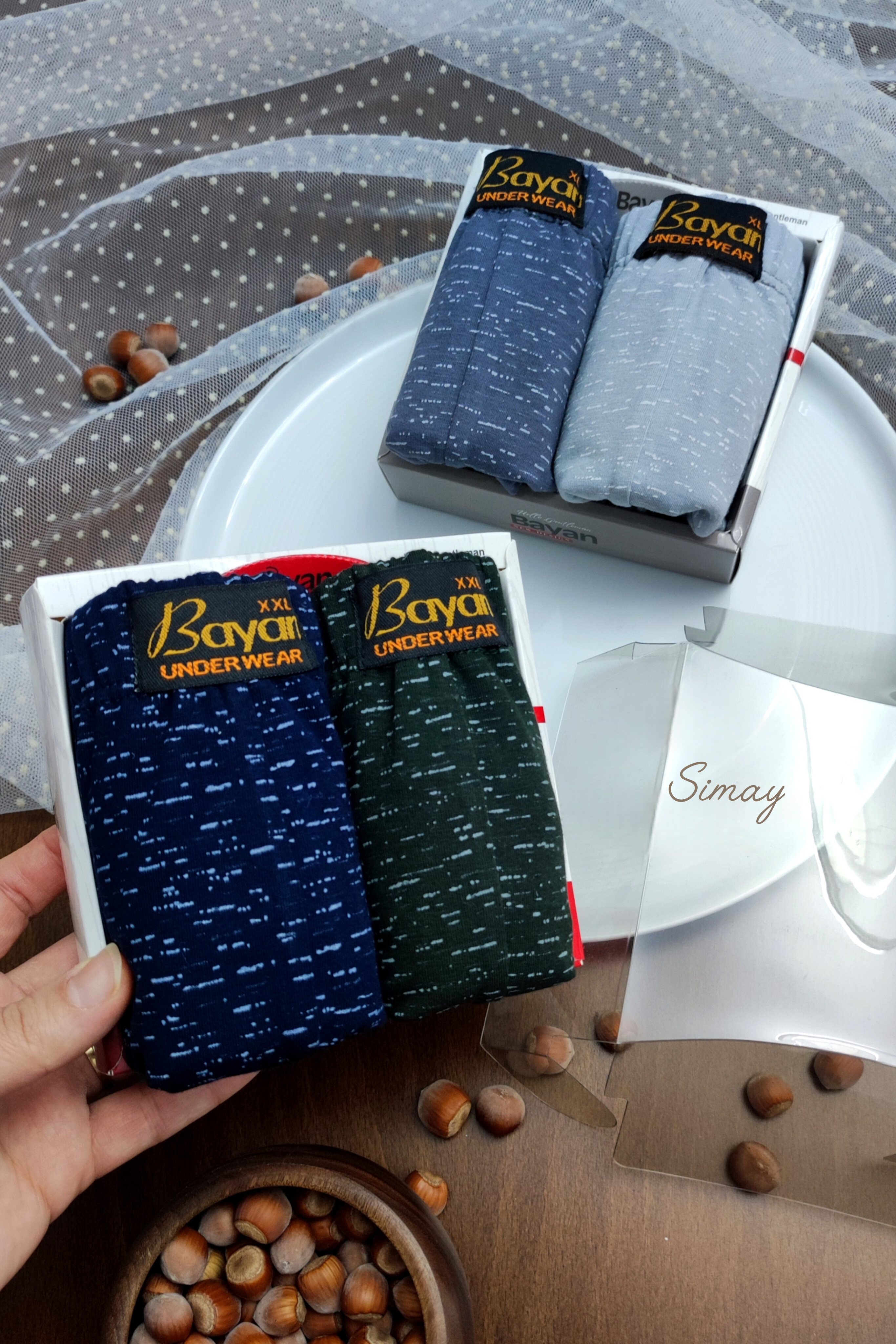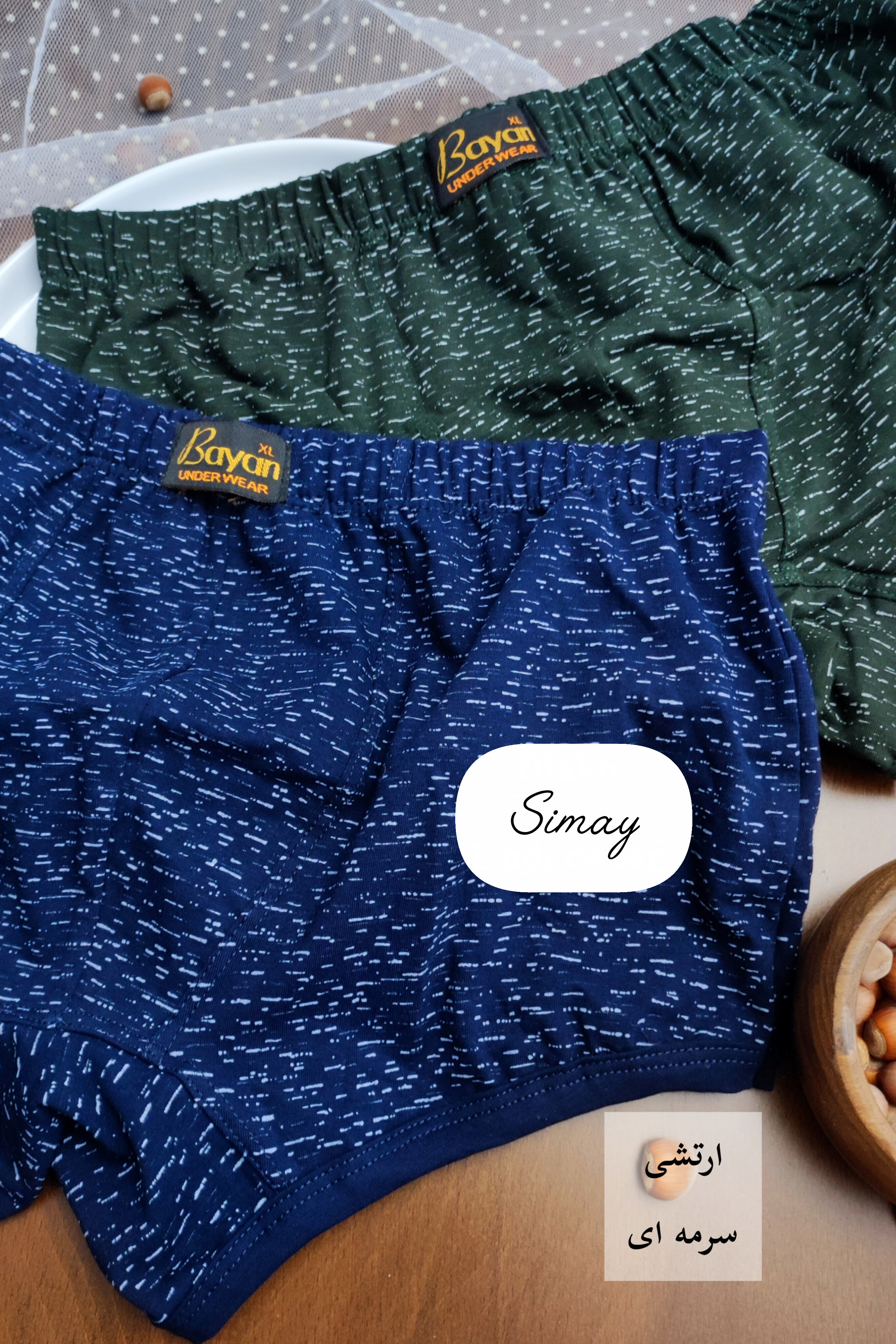 شورت مردانه نیم پا (باکسر) نخ پنبه پک ۲ تایی مدل دونه برفی برند بایان