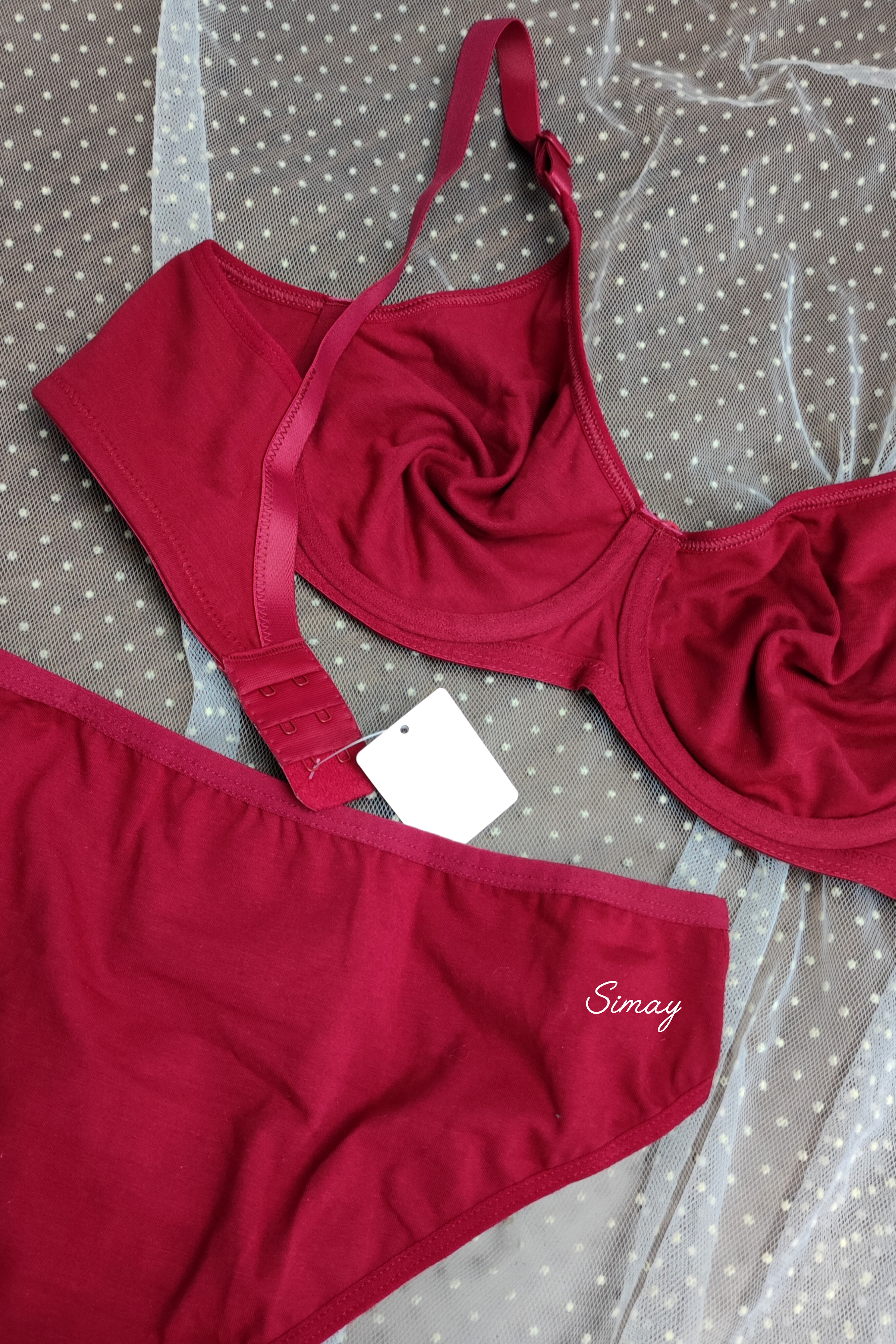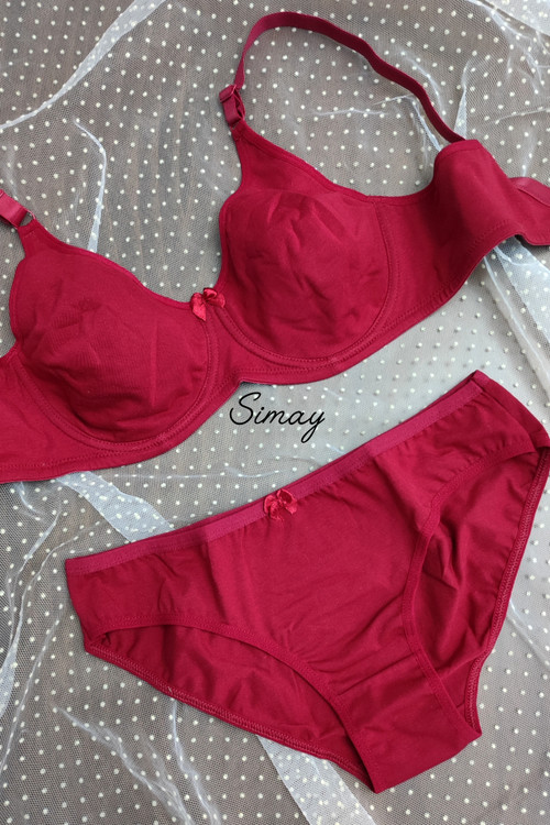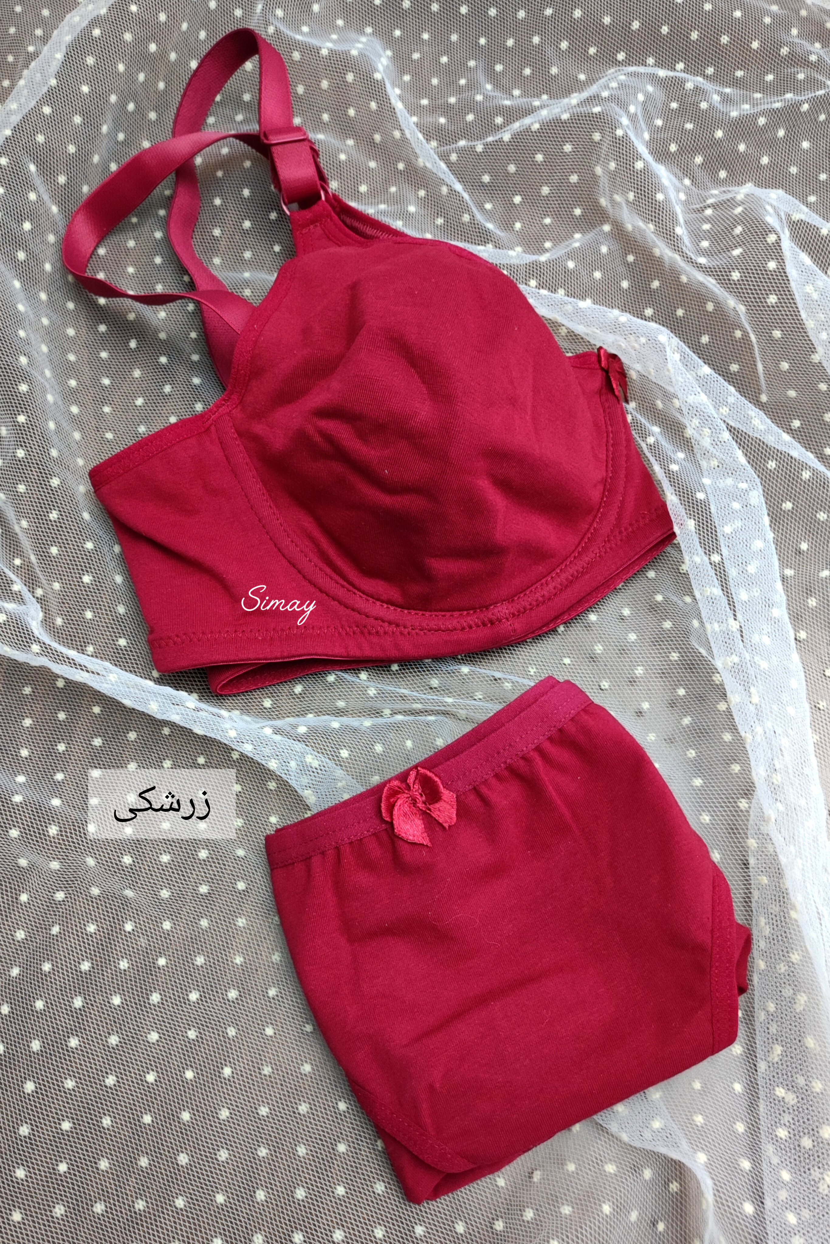 🌹 ست سوتین فنردار و شورت اسلیپ تمام نخی با فاق نخی در دو رنگ زرشکی و شیری با قواره کوچک مناسب کاپ B در چهار سایز به صورت زیر پیشنهاد میشود :